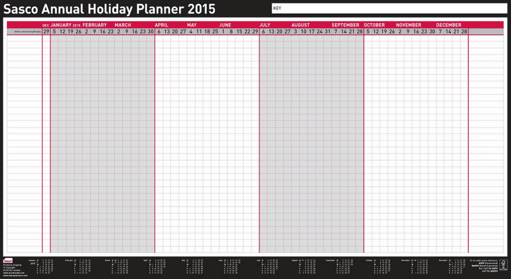 Sasco Annual Holiday Planner 2015 - Retail The Sasco Annual Holiday Planner splits the year, week by week, under Monday dates throughout the year.