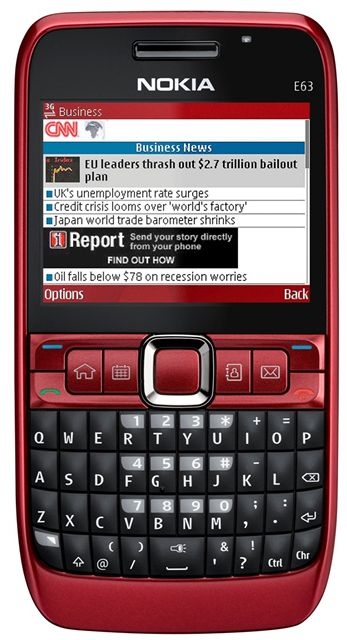 The E63 runs Symbian 9.2 S60 version 3.2 software, and the new touch sensitive Navi-Wheel which encircles the traditional d-pad should make it even easier to flip between menus and screens.