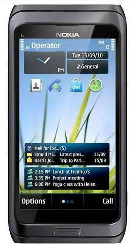 E7-00, 10.16 cm (4.0 ") touch screen, 640 x 360 AMOLED, QWERTY keyboard, 16 GB, 8 MP, Bluetooth 3.0, FM Radio, HDMI, 176 g