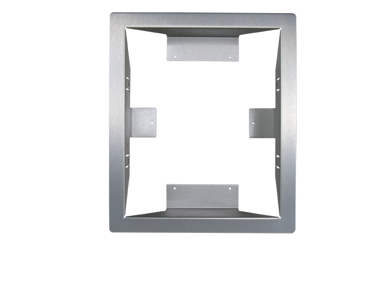 The Model TR-100 Trim Ring is designed for recess mounting the Model AE-100 Commercial Telephone Entry System. The flush-mount trim ring attaches to the wall studs or custom framing. The AE-100 attaches to the mounting ring.