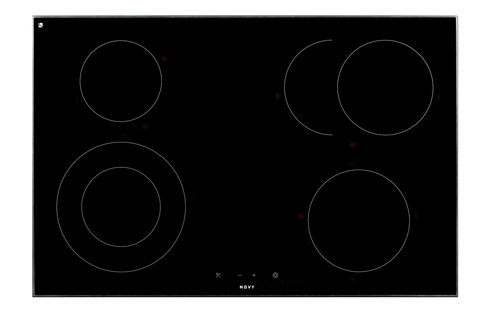 NOVY 1112. Case design: Built-in, Hob type: Ceramic, Top surface type: Ceramic. Control type: Sensor, Control position: Top front. Power: 7600 W. Width: 780 mm, Depth: 520 mm, Height: 41 mm