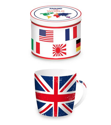 Porcelain mug in tin box, capacity: 350ml.