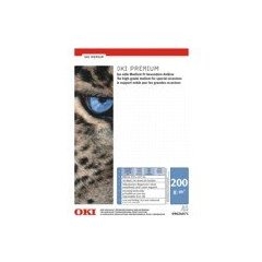 OKI Permium A-E-200 A4. Colour of product: White, Media weight: 200 gsm. Media sheets per package: 50 sheets, Paper dimensions: 210 x 297 mm