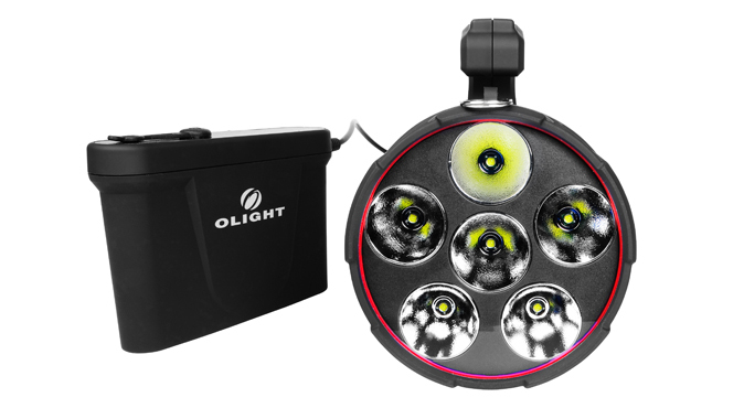 The X6 Marauder is a monster of a light, absolutely dominating the night with a mind boggling 5,000 lumens of light. Driven by 6 CREE XM-L LEDs, the X6 is light and compact with no activation delay, easily surpassing outdated HID technology. Reaching out to 700 yds, the X6 is ideal for use as a spotlight, in search and rescue, and for illuminating large areas. It has three brightness levels and a stunning strobe mode, controlled by a button on the handle. The X6 can be mounted to a tripod and/or used for fixed installations, powered by an AC adapter. Made of aluminum, polymers and carbon fiber, the light is rugged, light, and effectively dissipates heat. The X6′s innovative design separates the light from the power supply with a rechargeable high-capacity lithium battery pack — this shifts the additional weight of the batteries to your belt, rather than in your hands with the light itself. The X6 is the best example yet of Olight’s commitment to harnessing technology in imaginative ways to meet end user needs.
