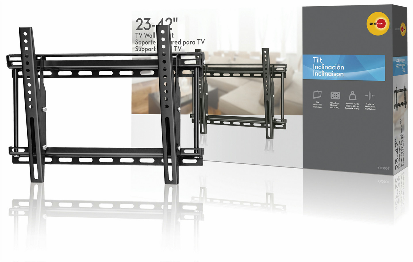 The OMN-OS80T is a low-profile, easy-to-use medium tilt mount and is compatible with most TVs up to 37–55” on the market today. • Fits most: 37–55" TVs