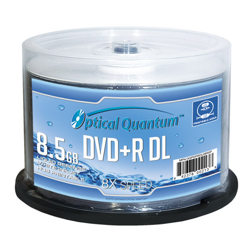 Optical Quantum's DVD+R DL discs provide exceptional performance, reliability, and compatibility. Certified and supported by the industries high speed Double Layer writers, Optical Quantum discs are approved for high speed burning up to 8X speeds with a storage capacity of 8.5GBs.