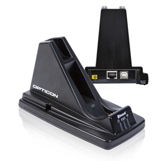 The CRD3101 is a charging and communication cradle for the OPR3101. All information stored on the OPR3101 (when the scanner is out of the Bluetooth range) is uploaded as soon as the OPR3101 is docked in the cradle. The CRD3101 is available in black and white.