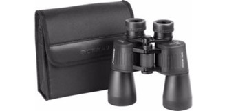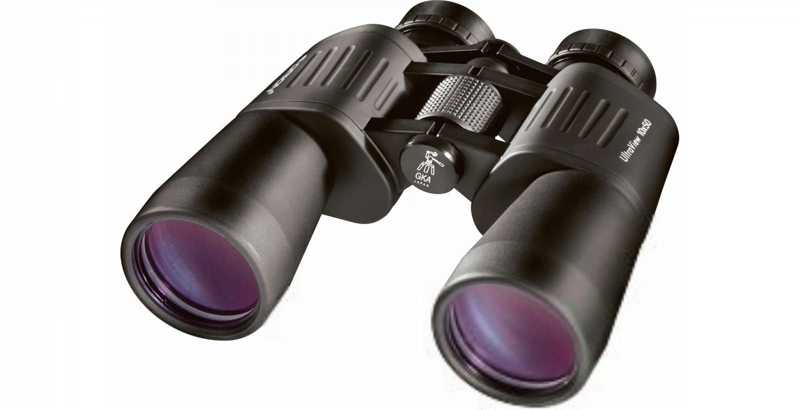 The Orion UltraView 10x50 Wide-Angle Binocular features a much wider field of view (6.5°) than standard 10x binoculars. Excels for high-power astronomy, long-distance nature observation, and hunting. 5mm exit pupil, 16' close focus, extra-long 22mm eye relief. Weighs 32 oz.