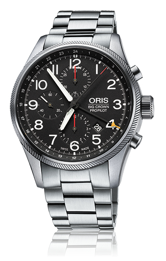 The Oris Big Crown ProPilot Chronograph GMT combines the precision and functionality of a Chronograph together with a second time zone. Those unique technical features with the distinctive design of the Big Crown ProPilot series makes this watch to the perfect partner on your world trips.