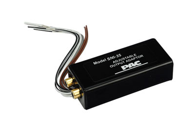Line out converter for factory radios with 2 to 50-watts per channel. Accepts speaker level input and provides stereo RCA output signal for adding an aftermarket amplified audio system.