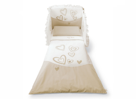 3 pcs. bedding set: bumper, removable quilt, pillowcase.