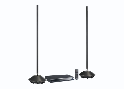 Panasonic SC-ZT2. Optical disc player type: DVD player. Audio output channels: 2.1 channels, RMS rated power: 160 W, Audio decoders: Dolby Digital,Dolby Pro Logic II,DTS. Satellite speakers RMS power: 80 W, Satellite speaker impedance: 3 Ω. Center speaker dimensions (WxDxH): 290 x 1231 x 290 mm, Center speaker weight: 3.9 kg. Weight: 2 kg, Dimensions (WxDxH): 430 x 262 x 59 mm, Depth: 262 mm