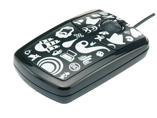 This mouse is modelled after an exhibit at the Saint Etienne Design Biennial: an entirely dark room in which objects, logos and characters flash up randomly. Design: Büro Destruct