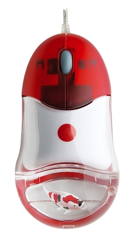 Always dreamt of that great aquarium full of preciously exotic fish? It's time to make your wish come true. Pat Says Now has built the world's tiniest aquarium right into this mouse. The fish happily floating within the mouse is a Showa Sanshoku, a variety of the Koi, Japan's popular ornamental fish.
