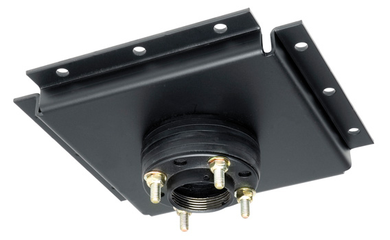 Structural Ceiling Adapter with Stress Decoupler Structural ceiling plate includes integral high density rubber decoupler assembly to help prevent vibrations from damaging the equipment mounted. Unit has 1 1/2-11.5 NPT fitting for attachment of fixed or adjustable length extension column. Ceiling plate attaches to concrete beam, slab, or other structural member. Model DCS200 supports single screen installations while DCS400 supports multi screen installations (see Peerless Multi Displays).