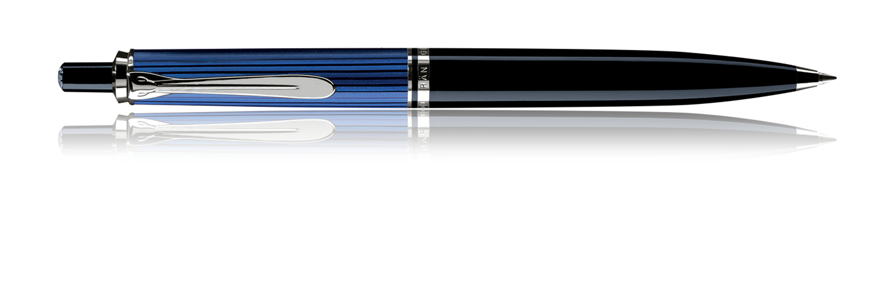 In 1950, the model 400 was launched. With its green-striped sleeve, it has become a world-wide symbol for the brand of Pelikan. In the eighties, the series was baptized Souverän, though popular lore has taken to calling it by its nickname Stresemann, because the state secretary of the “Weimarer Republik” was famous for his striped suits... . After the black and blue model of 1995, since 2003, a black-blue-silver model established itself as another classic pen. It also has the typical sleeve.