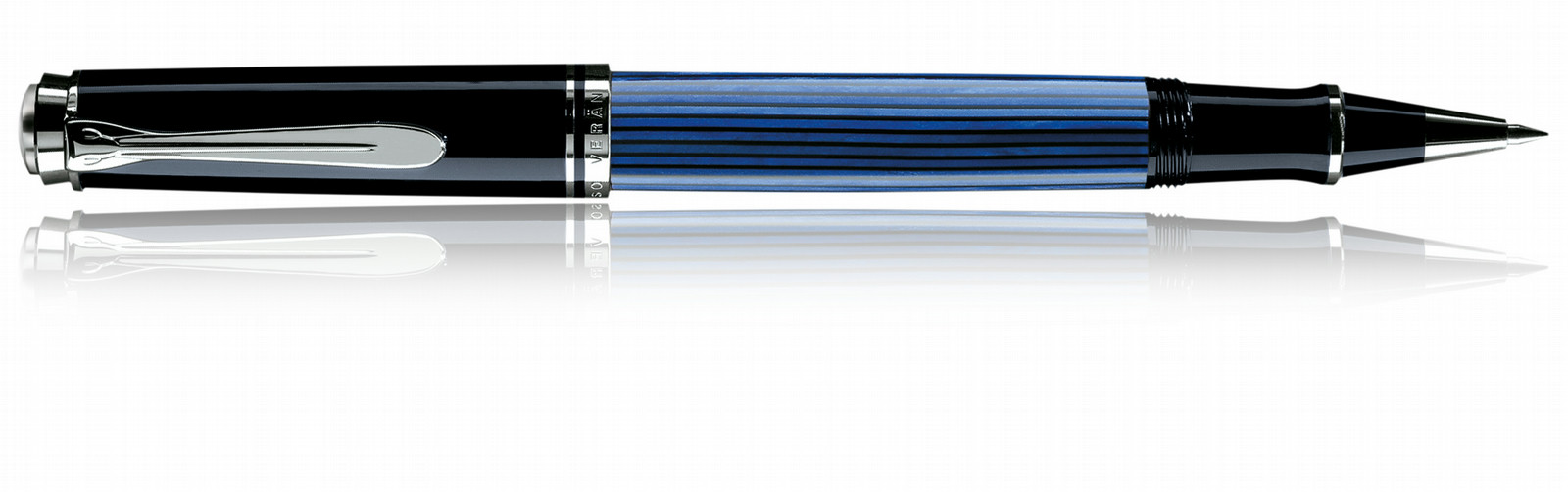 In 1950, the model 400 was launched. With its green-striped sleeve, it has become a world-wide symbol for the brand of Pelikan. In the eighties, the series was baptized Souverän, though popular lore has taken to calling it by its nickname Stresemann, because the state secretary of the “Weimarer Republik” was famous for his striped suits... . After the black and blue model of 1995, since 2003, a black-blue-silver model established itself as another classic pen. It also has the typical sleeve.