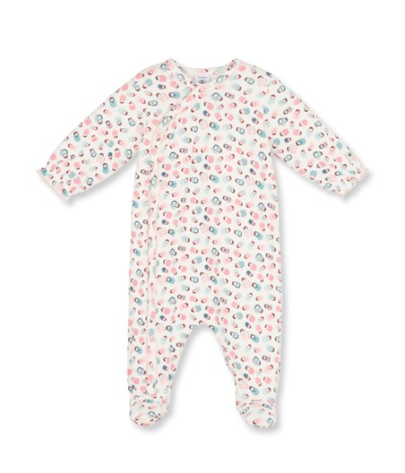 At the heart of winter, this baby girl sleepsuit's Russian doll print is more than welcome! You will also love the pyjamas' offset opening, their discreet pink picot stitch, and elasticized cuffs and ankles, which give them an unmistakably feminine appeal. Crafted in cosy tube knit, these crossover opening pyjamas are perfect for lulling your baby to sleep in comfort.