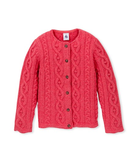 Made in a heavy-gauge knit, this girl's cardigan features cabling that gives it an authentic, preppy look: a soft, warm cardigan for winter that will add warm style to a young girl's outfits.