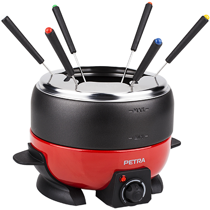 Beautifully designed luxury fondue pan. Removable from the separate heater base for easy cleaning and for filling up the fondue.The base is provided with an adjustable thermostat and it comes with 6 forks for maximum fondue pleasure!