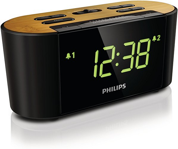 It’s time to care for the environment. Made of sustainable bamboo top and hazard-controlled components, this stylish Philips AJ3570/12 clock comes with a low standby power and automatic light sensor - saving energy at every second.