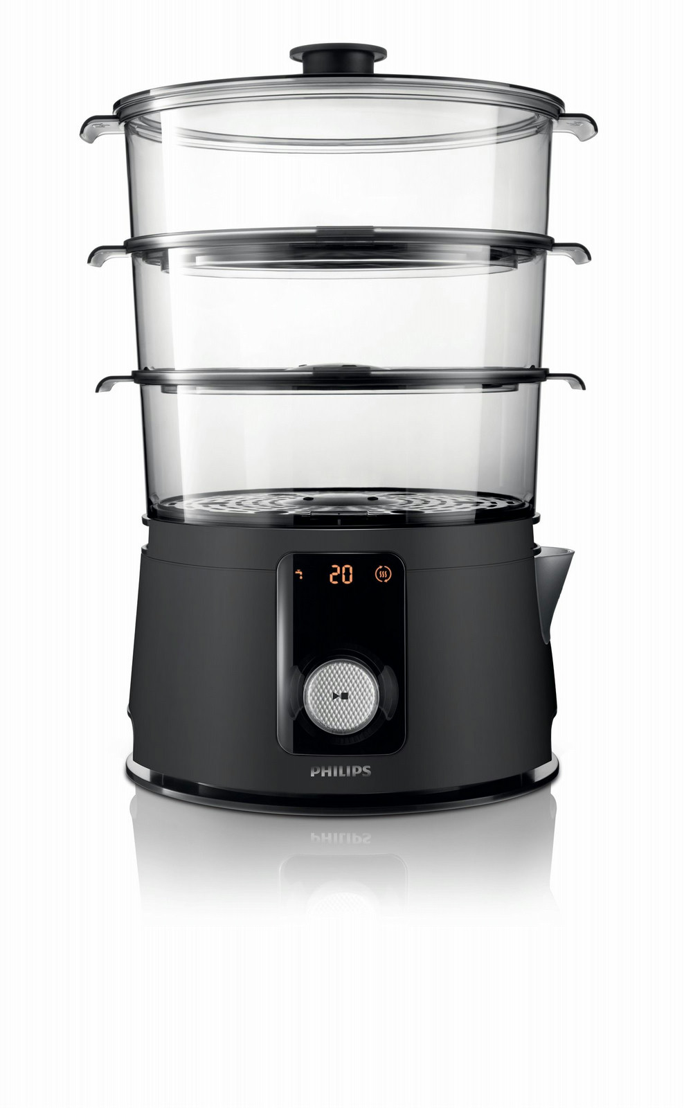 This high quality Philips steamer with unique Flavour Booster enriches the taste of steamed food with rich aroma of herbs and spices. Digital timer and keep warm function, all to help you prepare delicious meals every time.