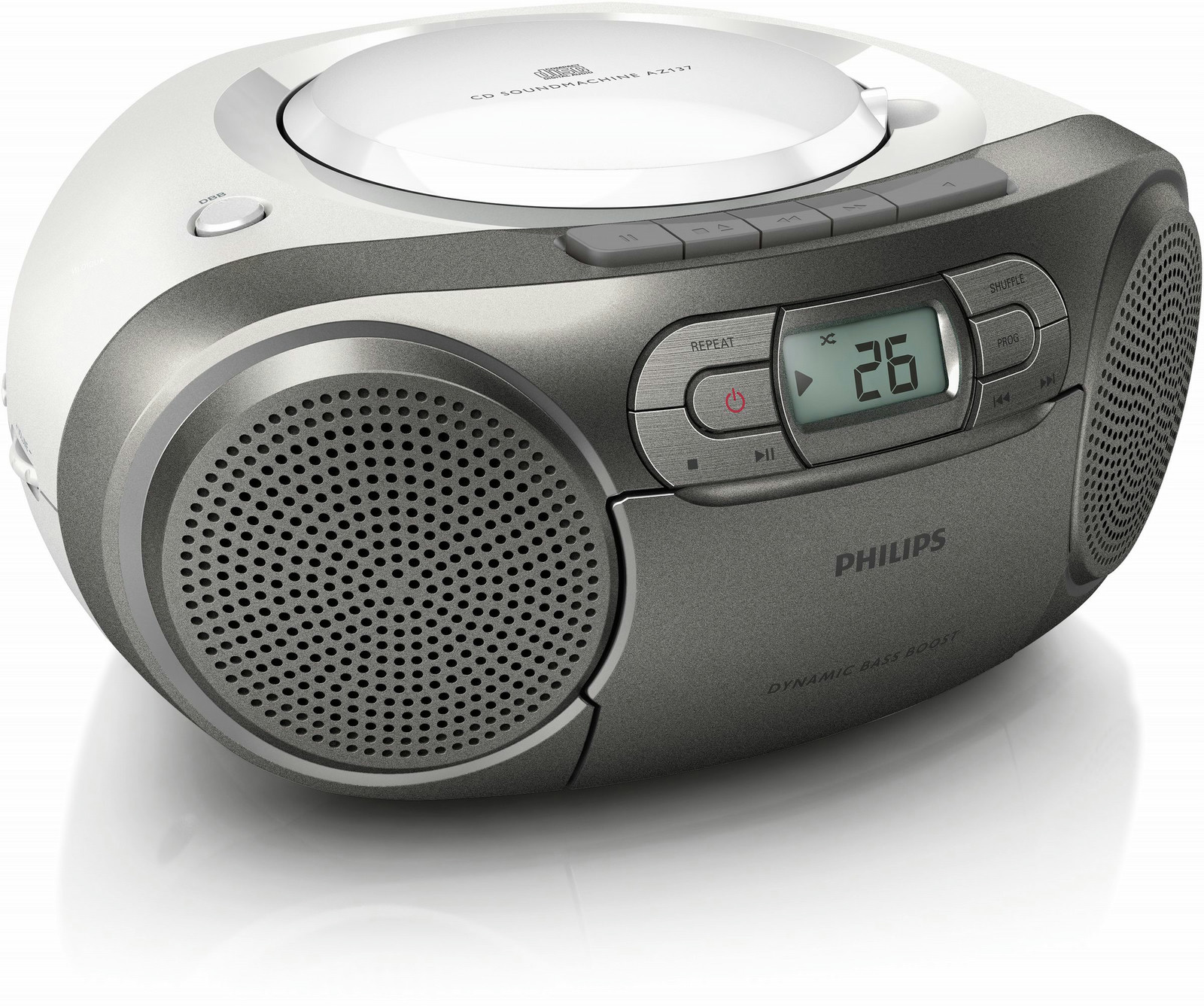 Philips AZ137/12. RMS rated power: 2 W. Supported radio bands: FM. Volume control: Rotary. Battery type: LR14, Battery voltage: 1.5 V, AC adapter input voltage: 220 - 240 V. Depth: 133 mm, Height: 240 mm, Width: 300 mm