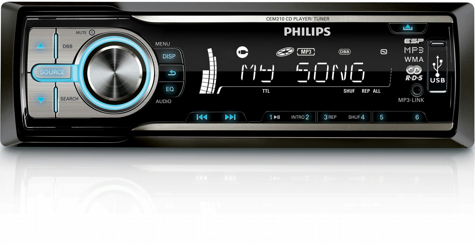 Philips CEM210X/78. MP3 bit rates: 32 - 320 Kbit/s. Key illumination colour: Blue