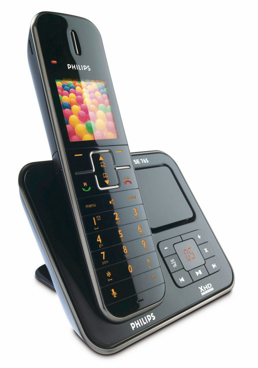 Philips SE7651B/22, Perfect sound. Type: DECT telephone, Recording time: 60 min, Ringer type: Polyphonic. Mounting type: Desk, Colour of product: Black. Dialing: Tone/Pulse. Phonebook capacity: 200 entries. Display: CSTN
