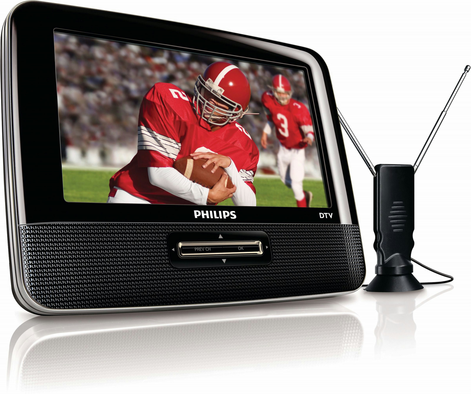 With the Philips Portable TV PVD700, you can enjoy digital television with extra program content. Compact design, it is a great companion for camping, gardening or just being outdoors. The built-in rechargeable battery lasts up to 3 hours.