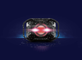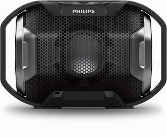 Get ready to unleash the beats! Philips ShoqBox SB300 cranks out explosive, pumping bass through twin bass radiators. Amp up the energy with lights that pulse to the beat. Rugged, shockproof and waterproof - take the party anywhere.