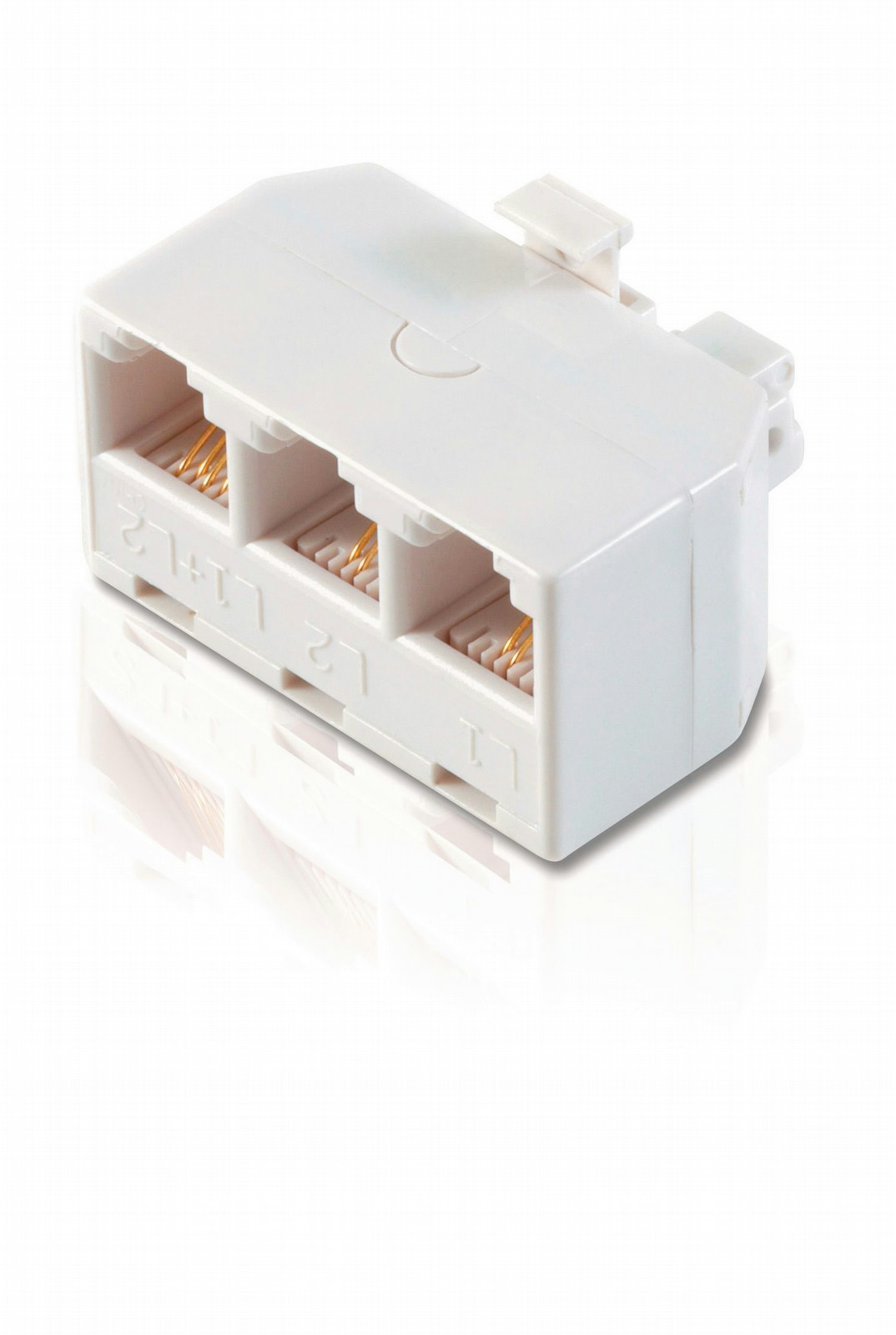 Convert any single modular jack into three modular jacks and hook up three devices to one line.
