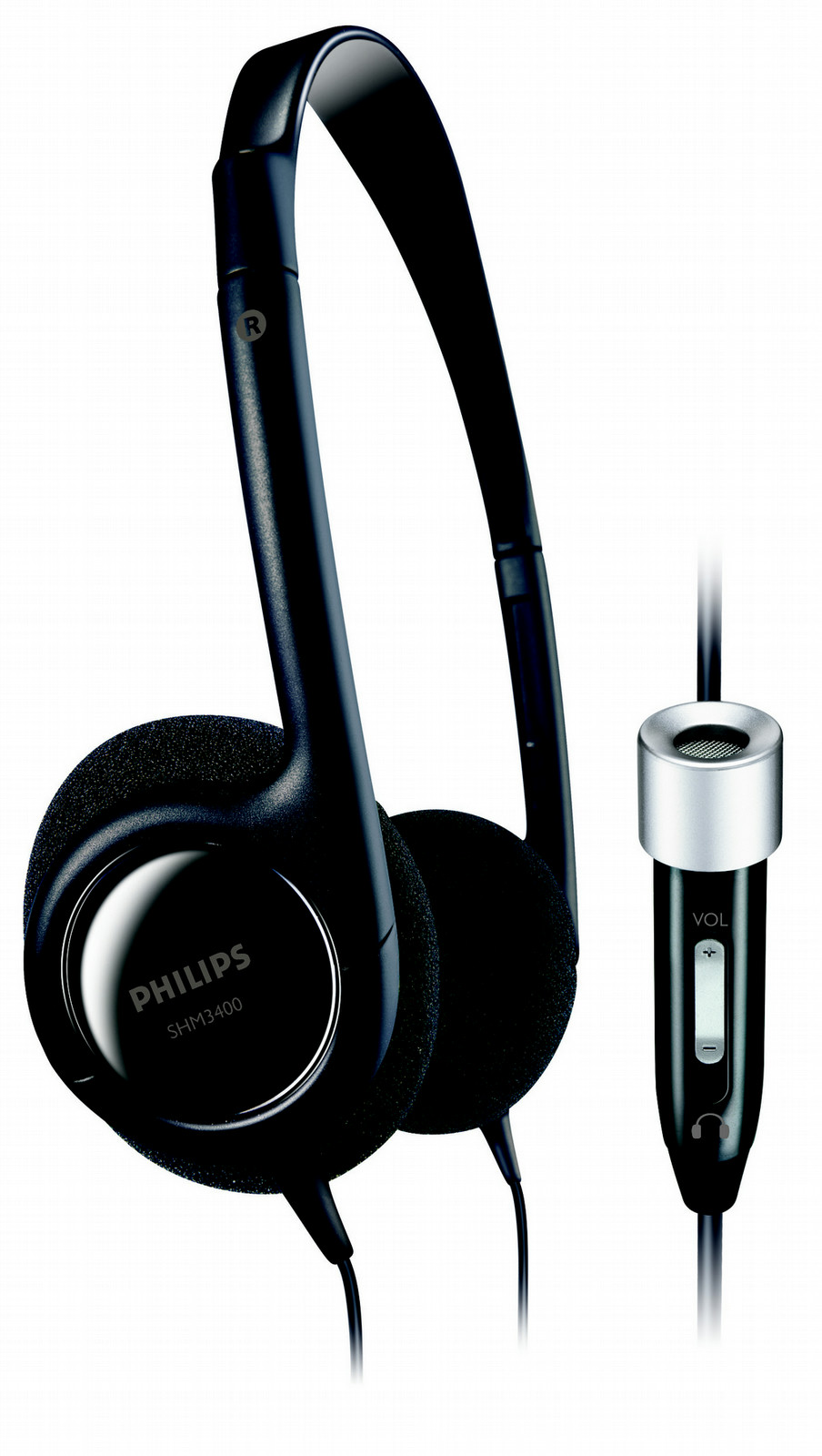 The SHM3400 stereo headset's microweight adjustable headband design and superb bass performance take you on a PC music and video adventure. Delivers crystal-clear VoIP communication too.