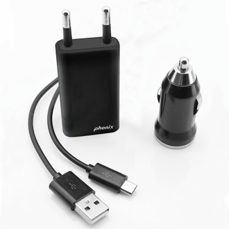 3-in-1 car, travel and USB charger kit, BLACK colour