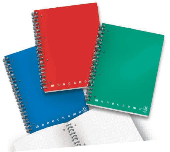 The graphic simplicity of the many shades make the collection extremely elegant and versatile at the same time, suitable for school, office and leisure. It gives personality to each tone, it offers an emotion for each item of the collection. Wire stitched and wire-o notebooks, paperbacks binding and hard covers, ringbinders and 3 flap file folders, a wide choice given not only by a very different types of products, but also by the different sizes offered: 21X 29,7, 15X21 and the mini size 12X17. The offer is completed by project folders, registers, index books and agendas in the pure Monocromo style, where is the color to win.