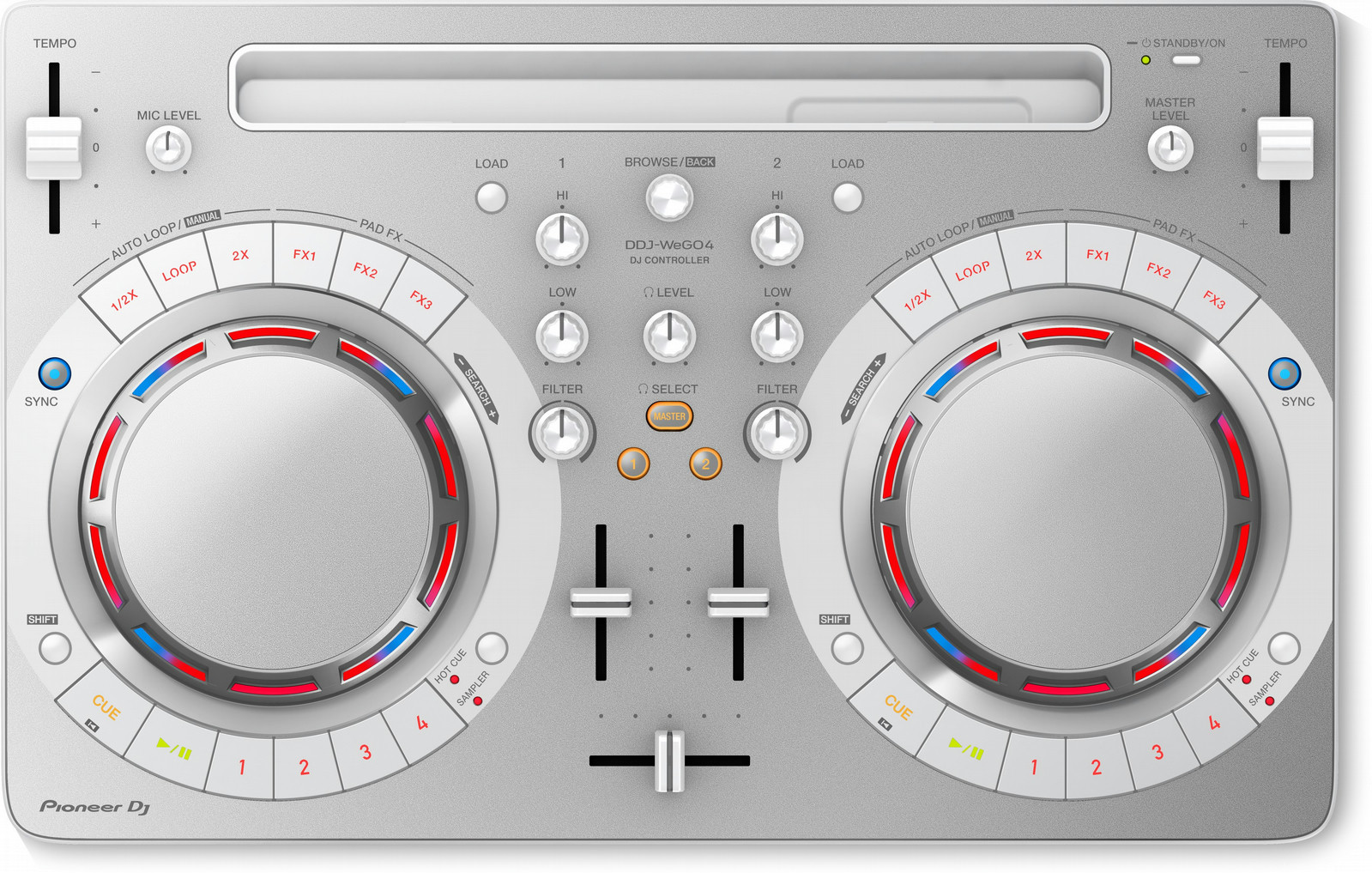 Take your first steps in the world of DJ-ing with the compact DDJ-WeGO4. Learn to mix seamlessly with tactile controls and jog wheels for scratching. And use the sampler, Hot Cues and Pad FX inherited from professional hardware to bring more creativity to your sets. Just plug in your laptop, tablet or smartphone and start to play.