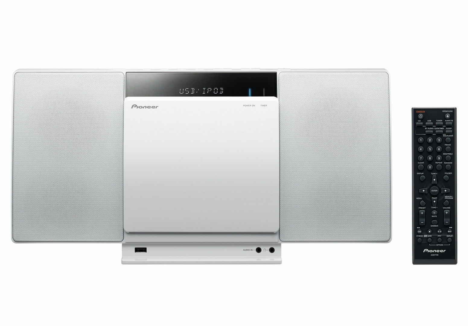 <b>Slim CD Micro System with iPod/iPhone/iPad Playback, Built-in Bluetooth, USB, and FM Tuner (White)</b>