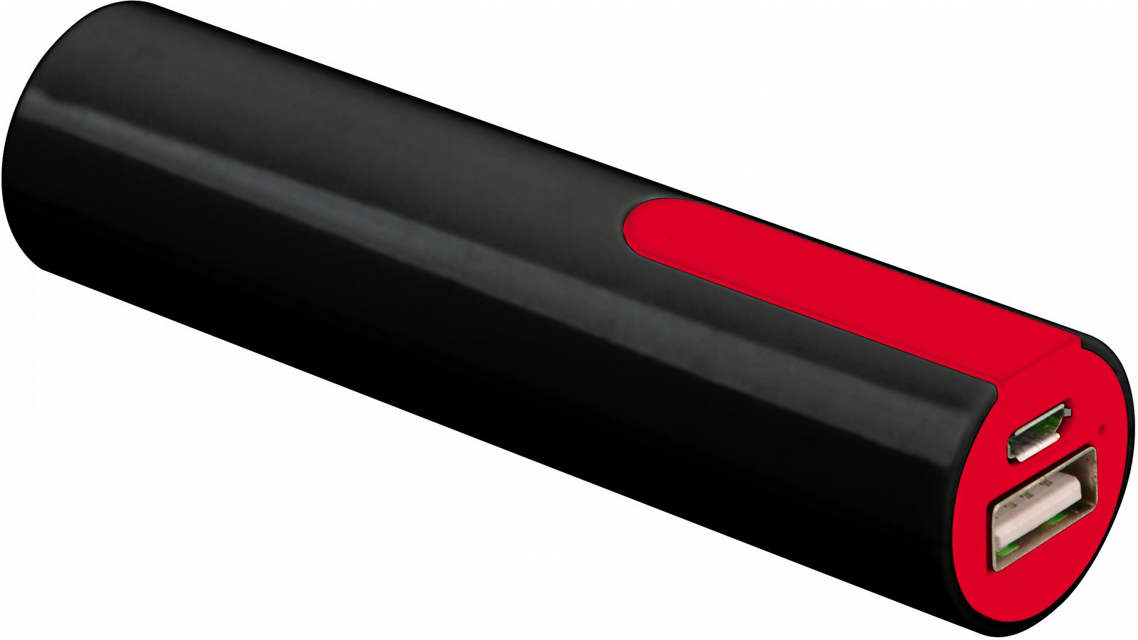 Portable Power Bank, Li-Ion 2000mAh, MicroUSB/USB, 65g, Black/Red