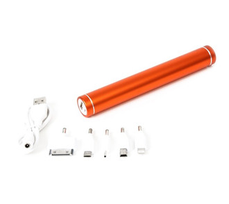 Portable Power Bank, Li-Ion 5200mAh, MicroUSB/USB, Orange + Charging Plugs for iPhone 4/5/6