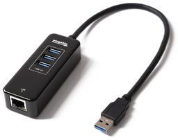 The Plugable USB3-HUB3ME is an easy way to gain wired gigabit Ethernet network speeds for faster HD video streaming, gaming, web browsing, network storage and more while expanding USB connectivity by connecting up to three USB 3.0, 2.0, or 1.1 devices to any USB 2.0 or 3.0 capable desktop, laptop, or tablet computer. The hub supports USB 3.0 transfer rates up to 5Gbps (640MBps) to allow data to move quickly between devices, ideal for high-throughput devices such as USB hard drives, flash drives, and USB video adapters.
