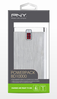 The PNY 10000 PowerPack is a dual-port universal rechargeable battery bank designed to provide you power wherever or whenever you need it. Ideal for charging two devices simultaneously. Works with Apple, Android, Windows, and BlackBerry devices. Power on the go.