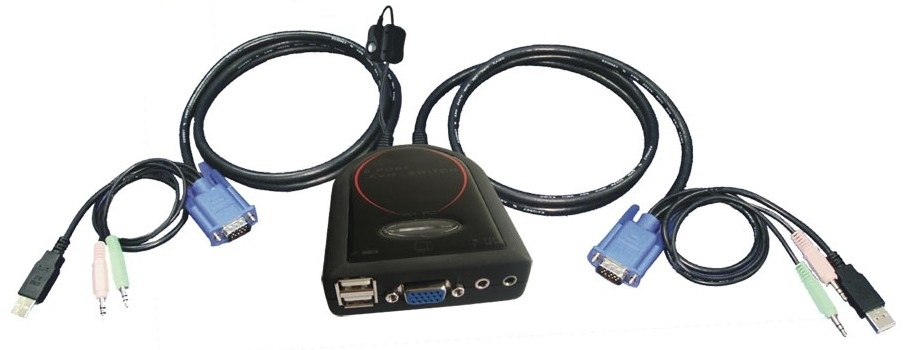- Provides an easy access to 2 computers from one Keyboard, Video and Mouse.
