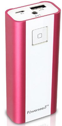 Powerseed PS-4800. Colour of product: Pink, Charger compatibility: Digital camcorder, Mobile phone, MP3, MP4, Portable gaming console, Tablet. Battery technology: Lithium, Battery capacity: 4800 mAh, Charging source: USB. Width: 235 mm, Depth: 96 mm, Height: 42 mm