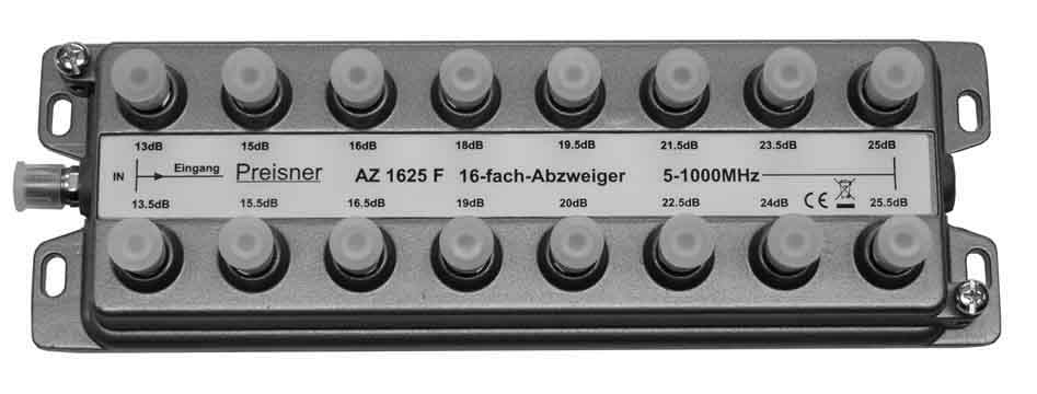 Preisner AZ1625F. Connector 1: F, Connector 2: 16xF. Colour of product: Silver, Material: Metal. Width: 240 mm, Height: 78 mm, Length: 4.4 cm