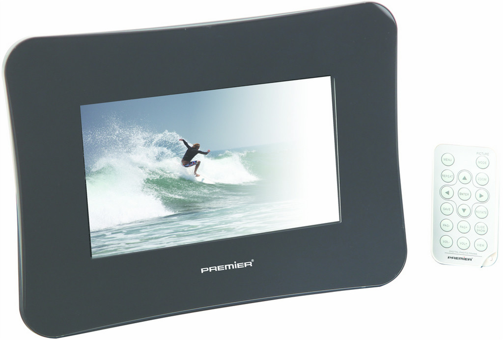 Premier PPF7021. Display resolution: 480 x 234 pixels, Display: LCD, Contrast ratio (typical): 300:1. Image formats supported: JPG, Video formats supported: M-JPEG, MPEG1, MPEG2, XVID, Audio formats supported: MP3, WMA. Compatible memory cards: CF, Memory Stick (MS), MMC, SD. Interface: USB 2.0. Power source type: AC, Battery