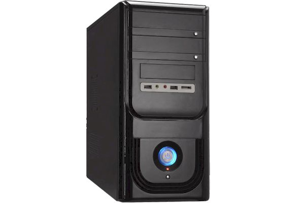 It has integrated audio connectors on the front of the box: audio input and audio output.