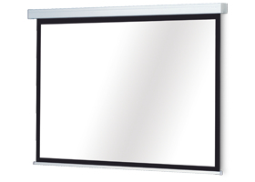 - Manually operated projection screen featuring “Easy Install” system for wall or ceiling mounting.
