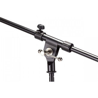 Professional microphone stand, Matt black Professional microphone stand with fixed boom. Featuring complete steel swivel joint with die cast junction. Die cast tripod base with high grade nylon joints. Soft grip rubber construction for clutch system and counterweight. Available in matt black
