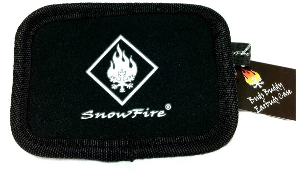Buds Buddy - Black SnowFire Earbuds Neoprene Zipper Carry Case - Rectangle Style with SnowFire Logo, clear side, and zipper pull