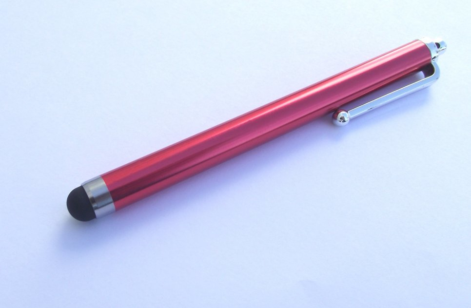 Racing Red SnowFire Stylus Pen with rubber soft tip - silver pocket clip.